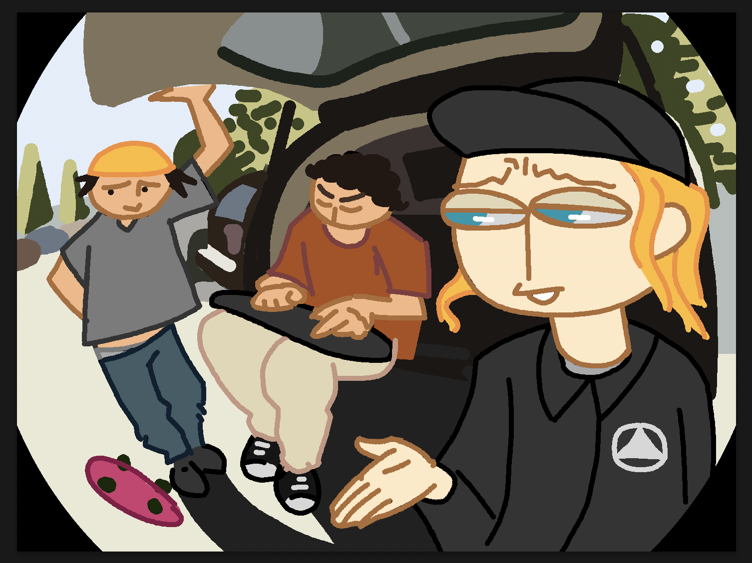 owen wilson skate vid my beloved… i’m foreverial transfixed by this dang video. i was kinda envisioning what it could look like if i ever tried to make an animated version of it. i prob would not be able to manage it in this style, but it’s a fun drawing either way. i have plans to write more about this video on the site in the future tho, don’t worry 🙂