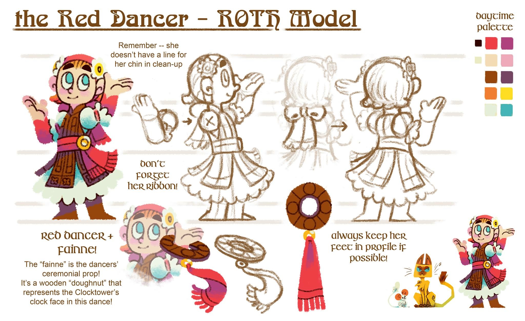 Since the film took place over a late afternoon, into a night of festivities, then into the next morning, the main characters were set to have both a “day palette” and a “night palette,” but the dancers only appear on a brightly lit stage, so I kept just the one “day palette” even though the dancers actually appeared during the ‘night’ segment of the film. How about that!