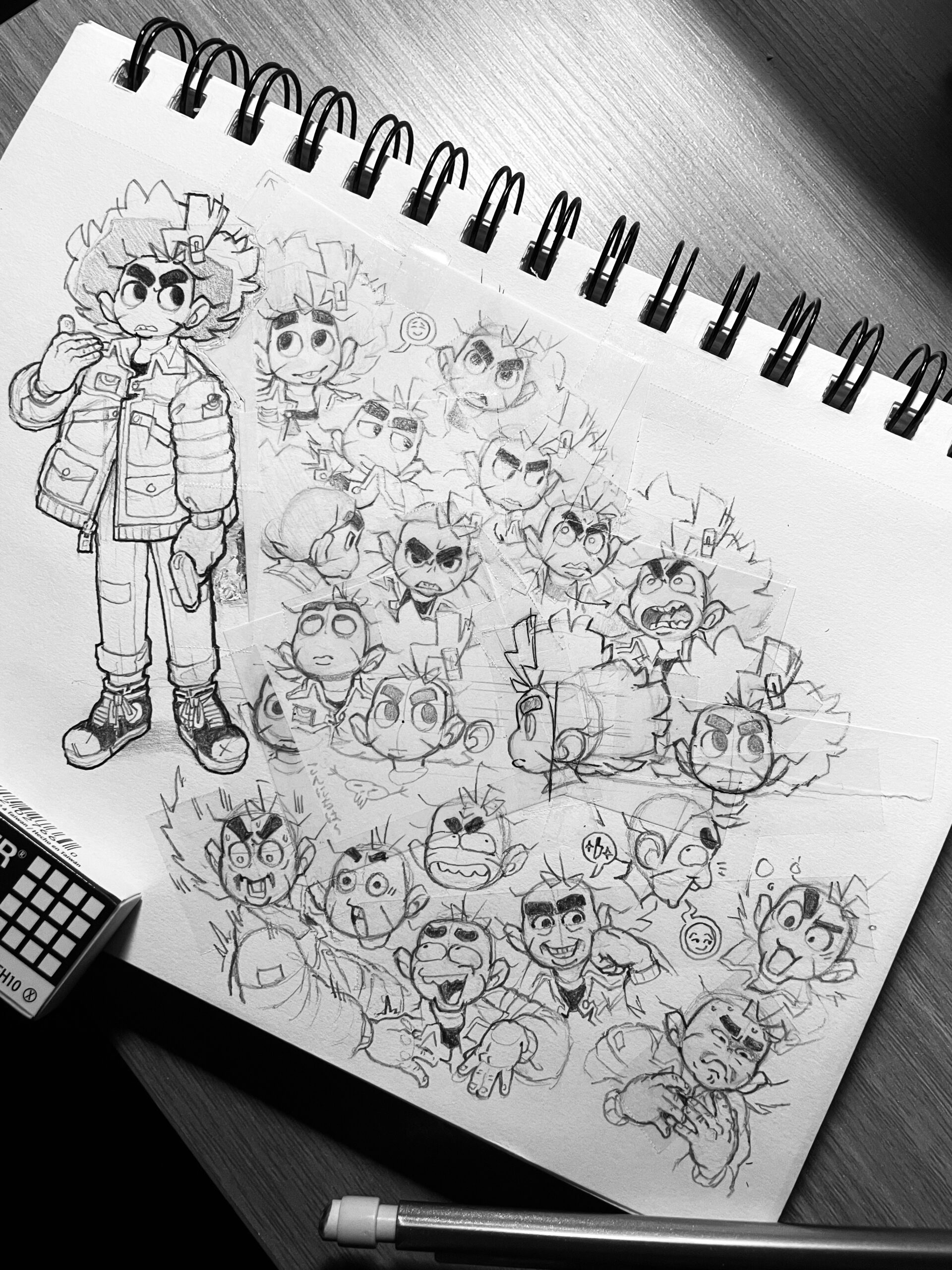 Redesign of Spike McCaulkey from “THE OTHER TOWN” from October of 2024. Still not a final design (I mean, we’ll never have a “final design” until the show actually (somehow) gets made, and so long as I’m still, uh, living, I’ll prob feel the urge to do a little redesigning now and then on my own time anyway), but I wanted (and still want) to move away from the smaller, toonier proportions of earlier OTHER TOWN art in favor of something a little more “lanky” and realistic. This idea definitely gets closer to the mark, but it’s not quite there yet. I want to push the quality of the line work on her clothes a little more, so there’s more of a sense of believable weight and wear.