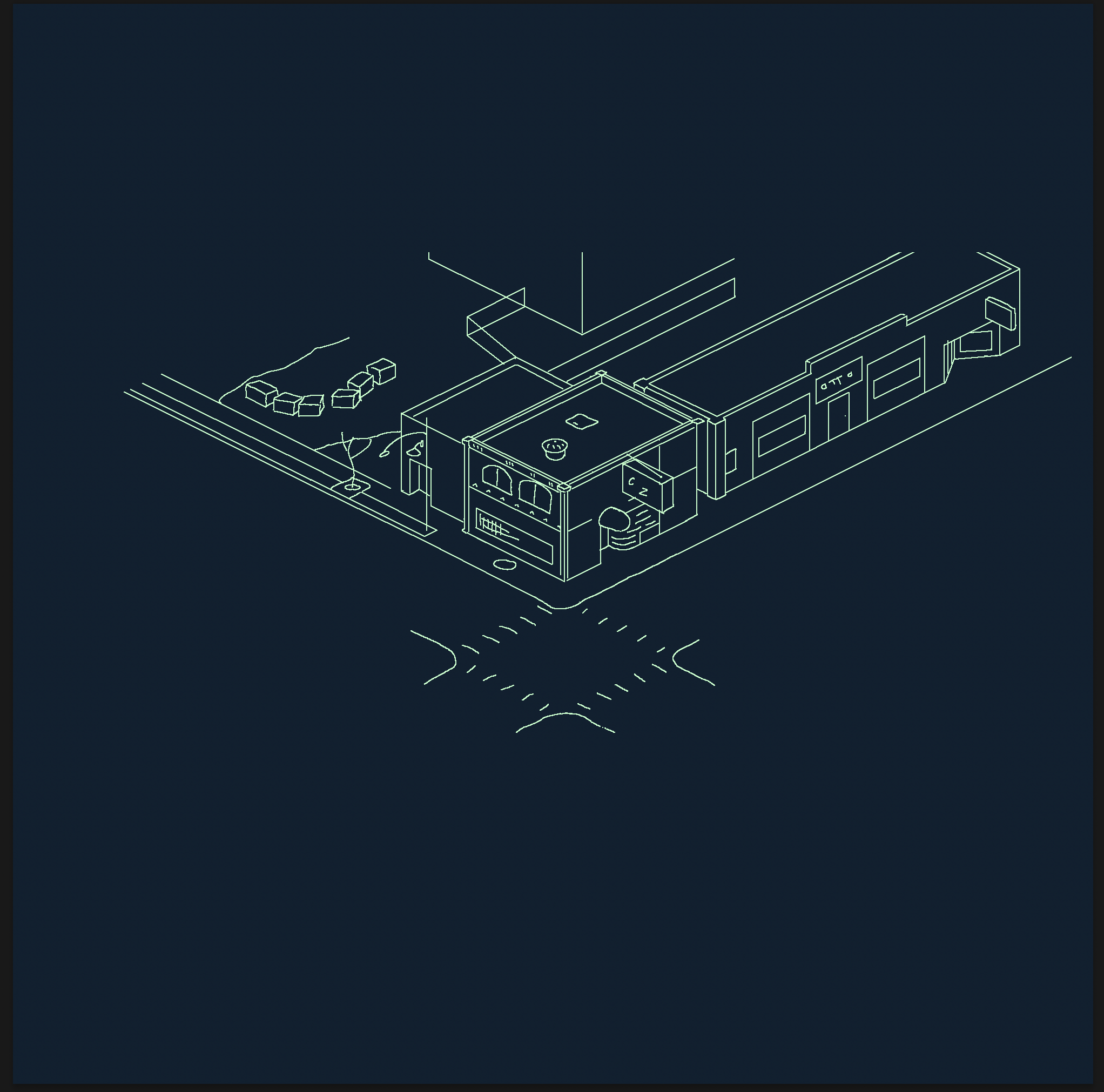 early lineart of the scene. i traced over the basic shapes of my 3d render, adding details as i went along. also even tho there are a lot of straight lines, i did everything freehand so it didn’t look too neat.