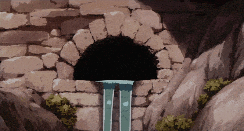 She traces the sound along the dungeon floor. We cut back to Boax, who has finally chosen the perfect task for her, then, in a comic beat, we cut back to Arete, who had already managed to displace a heavy stone from the ground and is hard at work tearing apart the floor. She breaks into a waterway below, and follows the flow of the water out through a grate. She hesitates for only a moment as she shakes fruitlessly at the bars, and the metal of the wish-granting ring on her finger scrapes audibly against the iron metal. Then she turns around and starts to follow the water back the other way, to its source.
